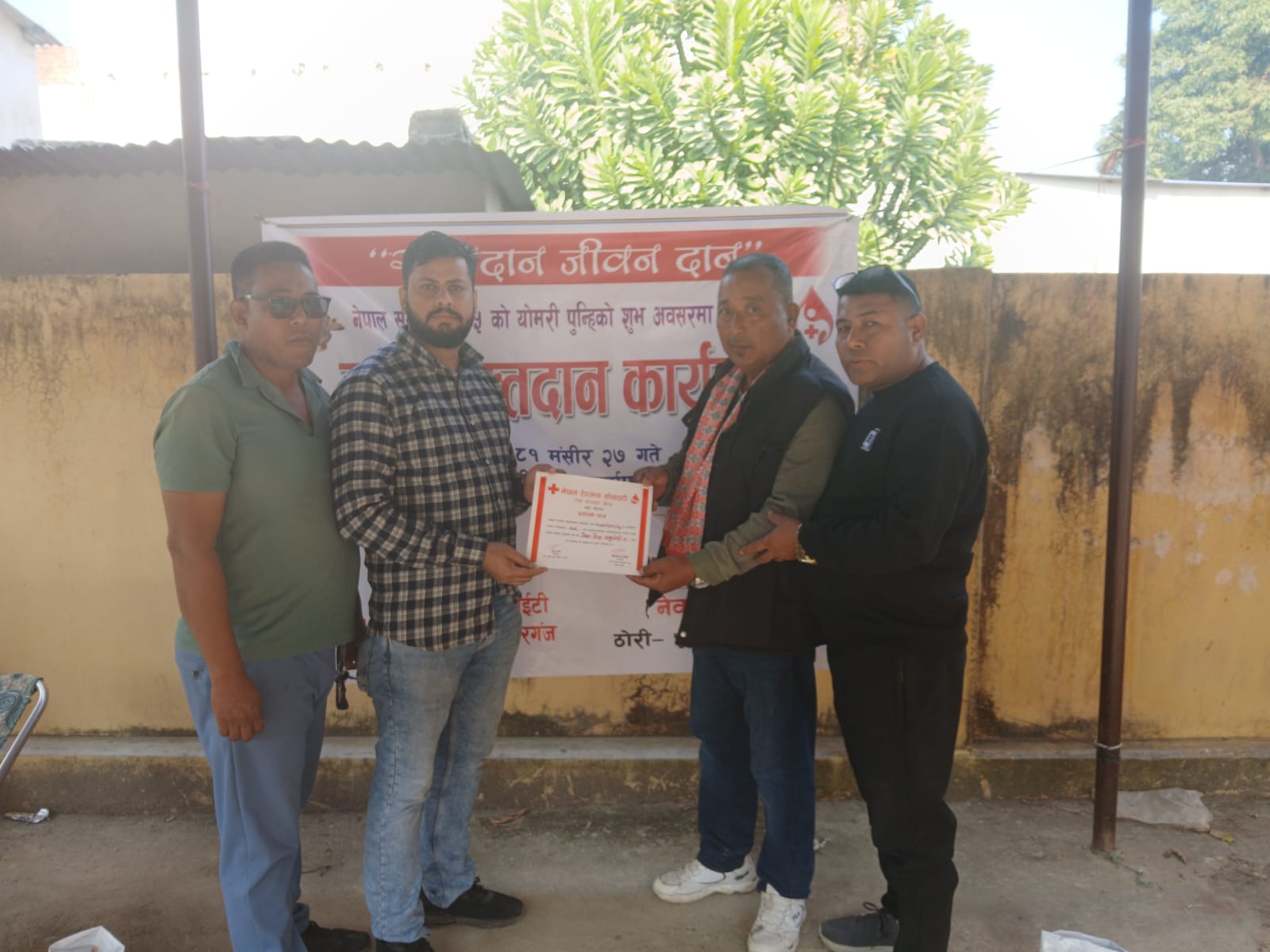 पर्साको ठोरी गाउँपालिकामा रक्तदान कार्यक्रम सम्पन्न, ६ महिलासहित ५२ जनाले गरे रक्तदान