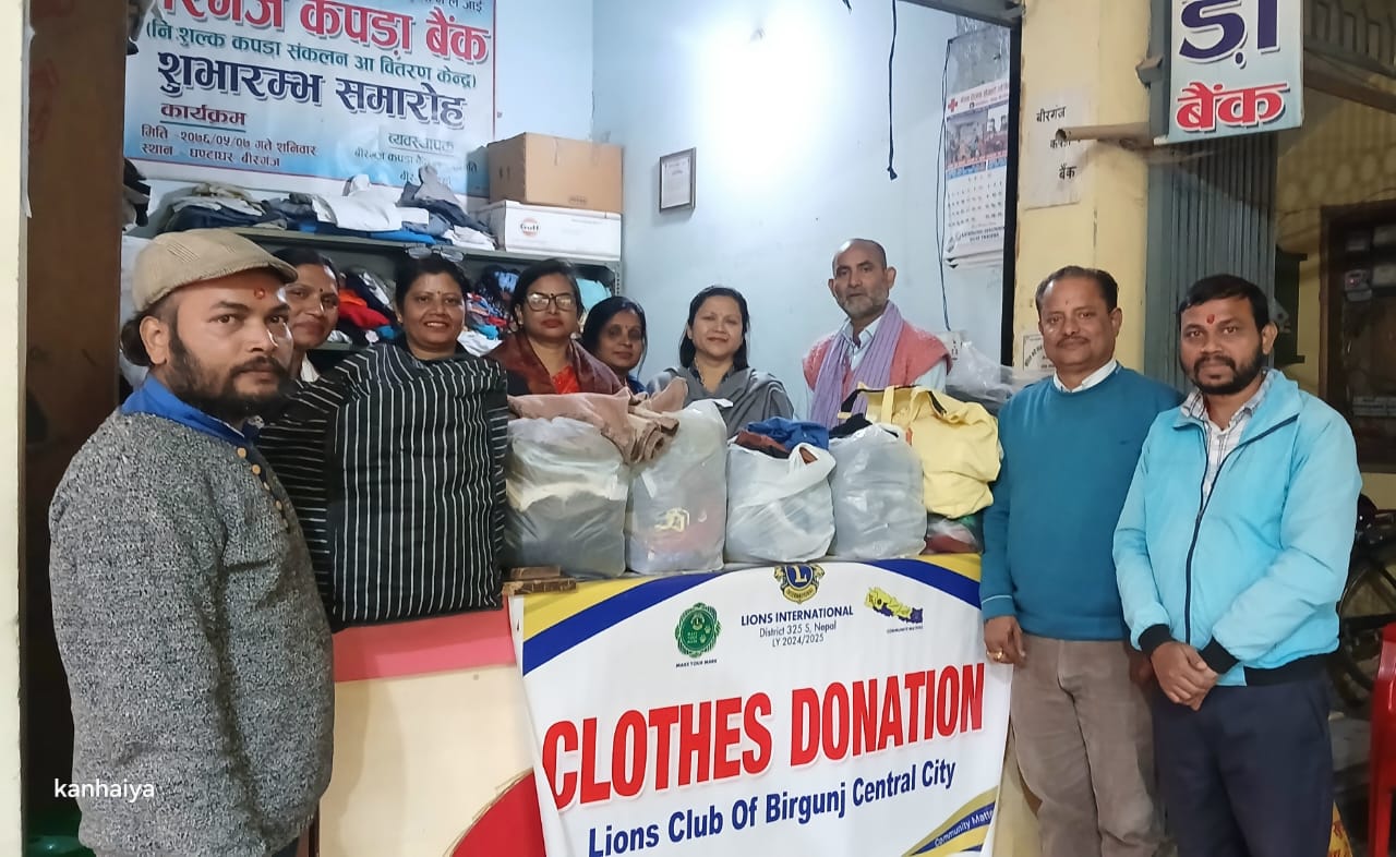 लायन्स क्लब अफ वीरगन्ज सेन्ट्रल सिटि द्वारा वीरगन्ज कपडा बैकलाई कपडा सहयोग