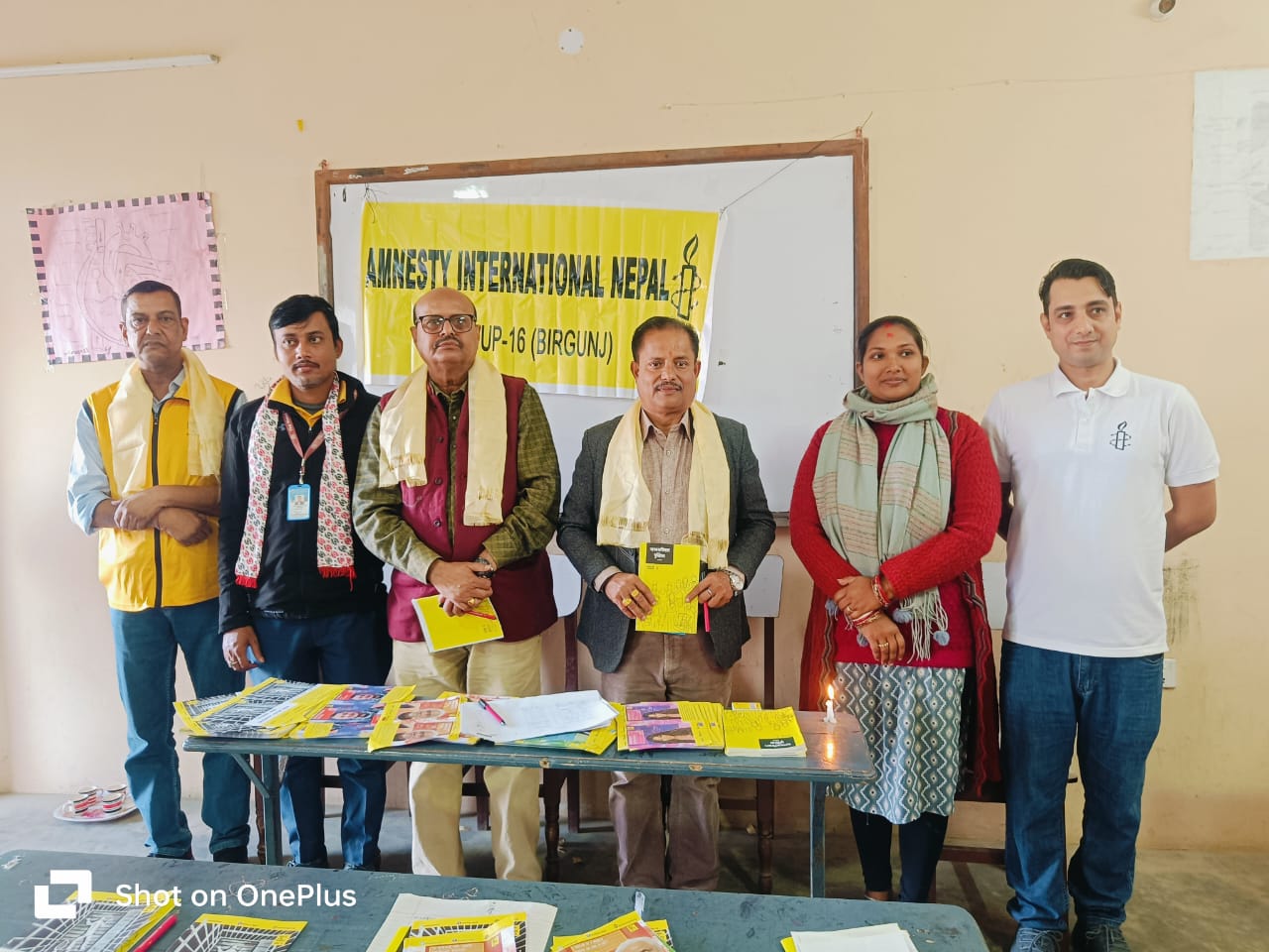 एमनेष्टी ईन्टरनेशनल ग्रुप १६ बीरगंज द्वारा मानवअधिकार सम्बन्धी एक दिने प्रशिक्षण कार्यक्रम सम्पन्न