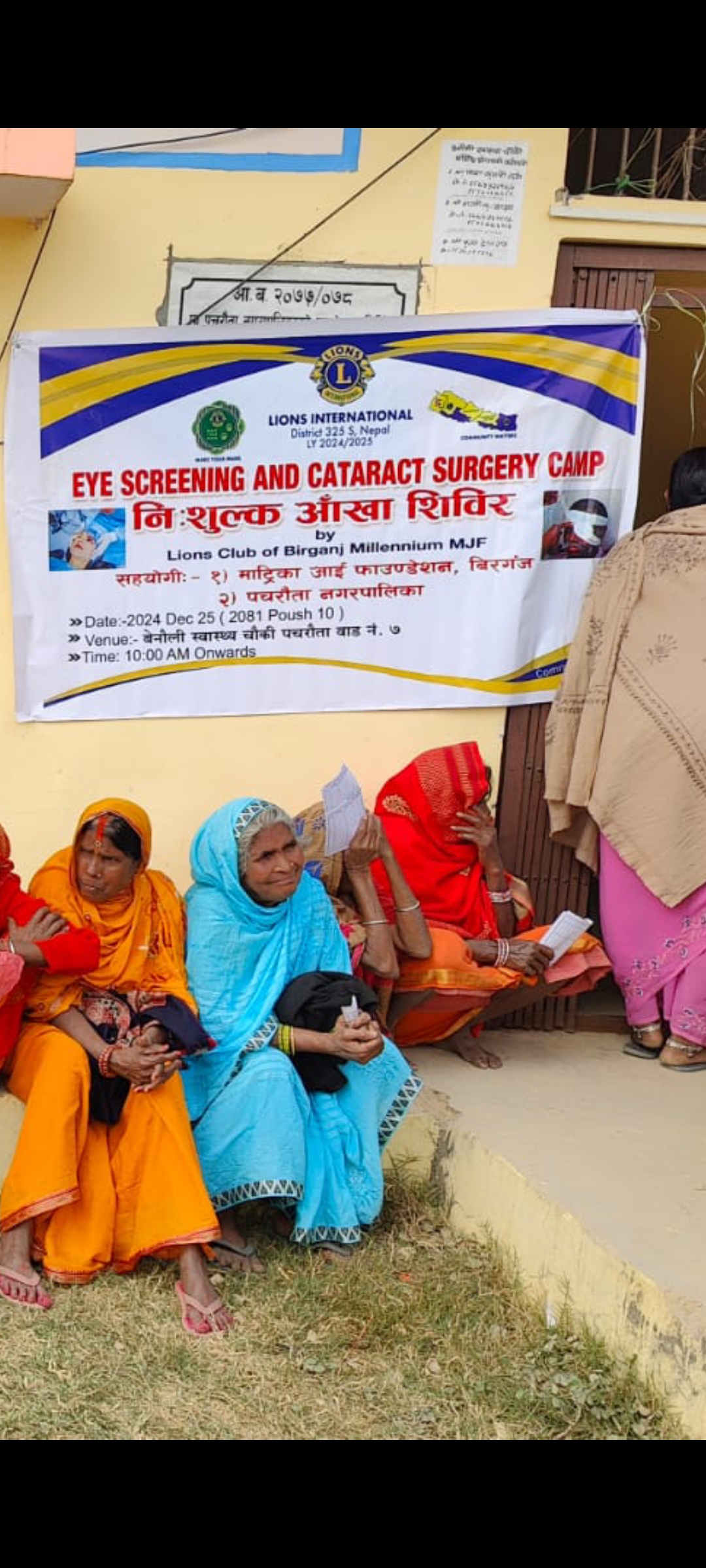 लायन्स क्लब अफ बीरगंज मिलेनियम एम.जे.एफ.र पचरौता नगरपालिकाको सहयोगमा निःशुल्क आँखा शिविर सम्पन्न