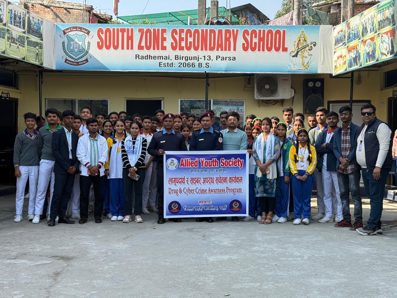 एलाईड युथ सोसाइटीको आयोजनामा साउथ जोन मा.बि.मा लागु औंषध तथा साईबर अपराध सम्बन्धि जनचेतनामूलक प्रशिक्षण कार्यक्रम सम्पन्न