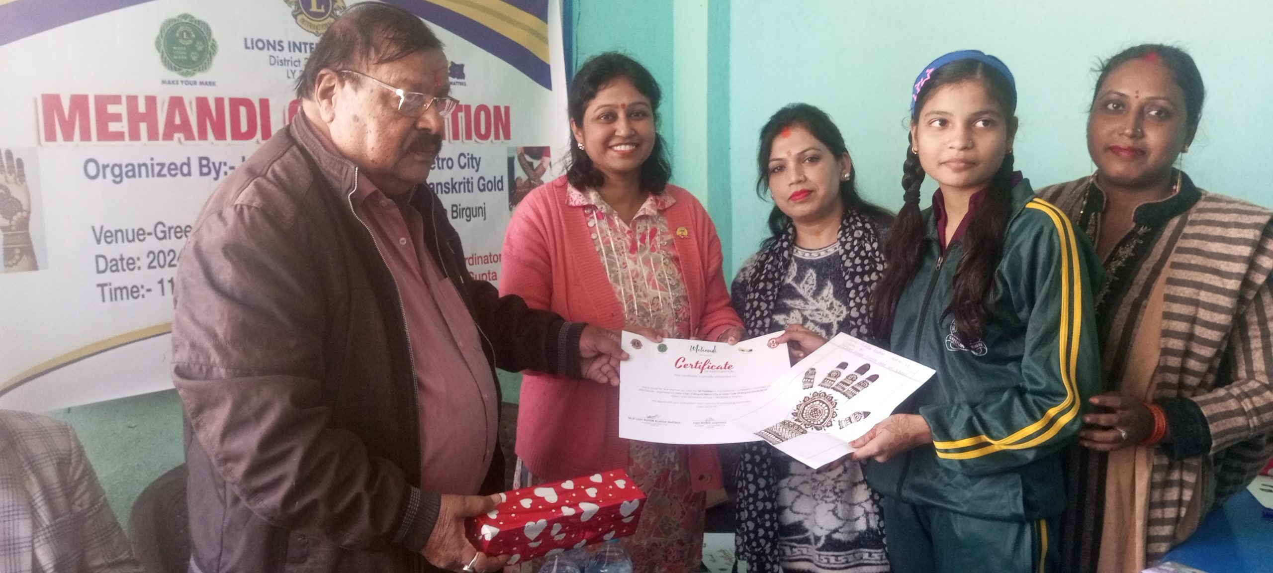 लायन्स क्लब अफ बिरगंज मेट्राेसीटि एवम् लायन्स क्लब अफ बिरगंज सान्स्कृति गोल्ड द्वारा मेहन्दी प्रतियोगिता सम्पन्न