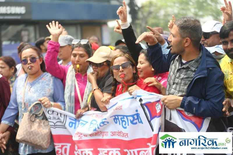 माइतीघर-बानेश्वर सडकमा शिक्षकहरूको सिठी जुलुस