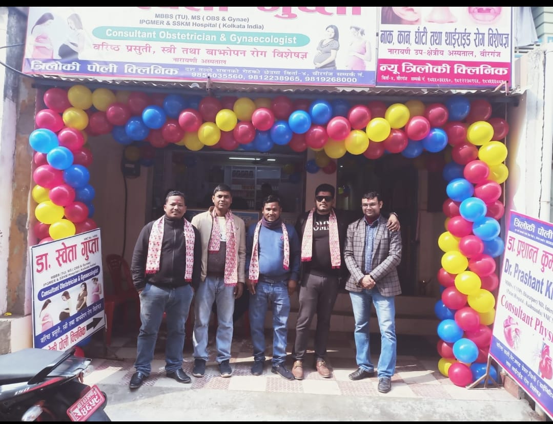 न्यु त्रिलोकी पोलि क्लिनिकको अब नयाँ स्थानबाट आफनो सेवा सुरु गरेको छ । मेन रोड बिर्ताबाट अर्थात आफनो पुरानो स्थानबाट अहिले बिर्ता मन्दिर पछाडी स्थानान्तरण भएको क्लिनिकका संचालक श्याम गुप्ताले जानकारी दिनु भयो । उक्त क्लिनिकमा वरिष्ठ छाला, पेट तथा ब्लल प्रेसर रोग बिशेषज्ञ डा प्रशान्त कुमार साह तथावरिष्ठ स्त्री एवम् बाझोपन रोग बिशेषज्ञ डा स्वेता गुप्ताले सेवा प्रदान गरिरहनु भएको छ । नया स्थानमा पुरानो भन्दा अराकिलो तथा पुर्णरुपमा सुबिधा सम्पन्न रहेको देखिएको छ । न्यु त्रिलोकी पोलि क्लिनिकले समय समयमा बिभिन्न निशुल्क शिबिरहरु संचालन गरिरहेको हुन्छ । नया स्थानमा पनि निशुल् शिबिरको बारेमा व्यवस्थानको तयारीमा रहेको संचालक श्याम गुप्ताले जानकारी दिनु भयो ।