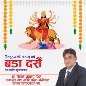 २६ असोज, काठमाडौं । मान्यजनबाट टीका र जमरा लगाएर आज विजयादशमी पर्व मनाइँदै छ । नेपाल पञ्चाङ्ग निर्णायक विकास समितिले टीका लगाउने उत्तम साइत ११ बजेर ३६ मिनेटलाई तोकिदिएको छ ।११ बजेर ३६ मिनेटभन्दा अगाडि वा पछाडि टीका लगाउनै हुँदैन त ?‘टीका-जमरा देवीको प्रसाद हो, प्रसाद भन्ने कुरा जुन समयमा लगाए पनि हुन्छ,’ नेपाल पञ्चाङ्ग निर्णायक समितिका पूर्वअध्यक्ष प्रा.डा. रामचन्द्र गौतमले भने, ‘आज बिहान ८ बजेर ३३ मिनेटमा देवी विसर्जन गरेपछि जुनसुकै समयमा मान्यजनबाट टीका–जमरा लगाएर आशिर्वाद लिन सकिन्छ ।’