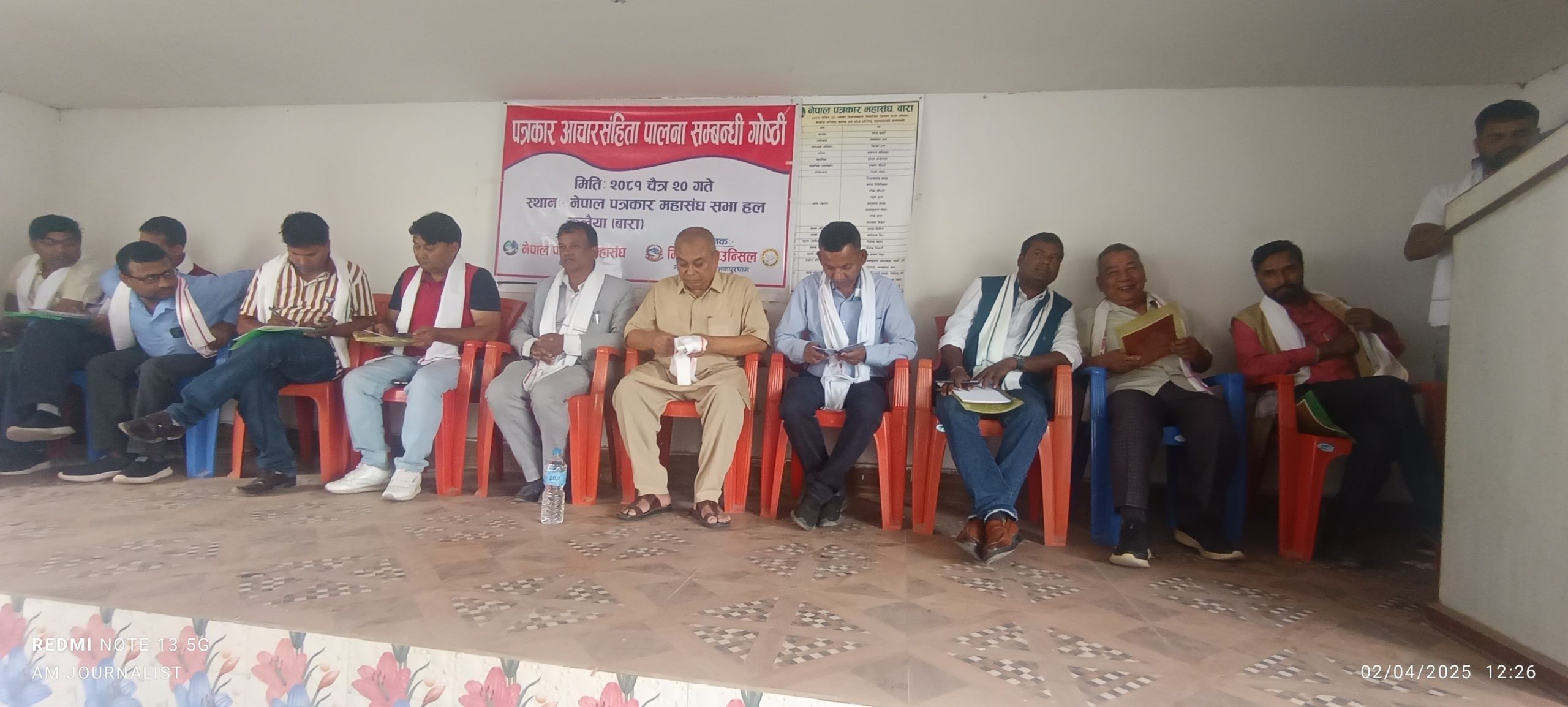 नागरिक न्युज डेस्क,चैत्र २० बारा । मधेश प्रदेशका गृहसञ्चार तथा कानुन मन्त्री राजकुमार लेखीले सम्पुर्ण संचारकर्मीहरुलाई आचारसंहिता पालना गर्न अत्यन्तै आवस्यक रहेको बताउनु भएको छ । नेपाल पत्रकार महासंघ बाराले आयोजना गरेको पत्रकार आचार संहित सम्बन्धी कार्यक्रमलाई प्रमुख अतिथीको रुपमा सम्बोधन गर्दै मन्त्री राजकुमार लेखीले पत्रकारहरुको जीवन बिमा गर्ने संदर्भमा १० दिन भित्र आम सञ्चारकर्मीहरुको लागि गर्न सकिन्छ सहयोगको बारेमा कमिटी गठन गरेर अगाडि बढ्ने बताए । मिडिया काउन्सिल मधेश प्रदेशका कार्यवाहक अध्यक्ष कैलाश दासको अध्यक्षतामा भएको कार्यक्रममा नेपाल पत्रकार महासंघ मधेश प्रदेशका अध्यक्ष श्याम बञ्जारा लगायतले मंत्व्य व्यक्त गरेका थिए । कार्यक्रमको सहजिकरण नेपाल पत्रकार महासंघ मधेश प्रदेशका कोष अध्यक्ष तथा संस्कार एफ.एमका प्रबन्ध निर्देशक अनिल गौरोले गरेका थिए ।